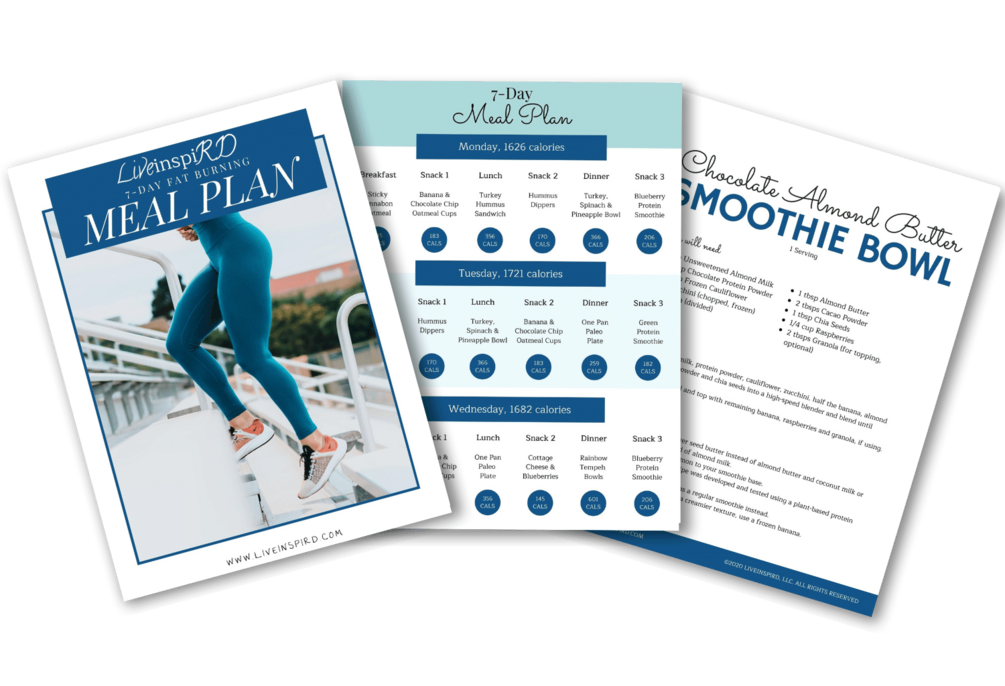 Lose weight with this easy-to-follow meal plan. The LiveinspiRD 7-Day Fat Burning Meal Plan shows you how to eat to burn fat and start losing weight. Each meal is balanced to support your blood sugar levels, keep your energy going and help your body burn fat!